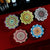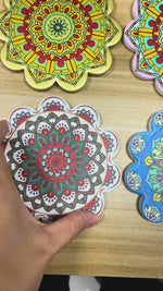 POSHIO Ceramic Coaster for Table Decor, Set of 5 | U.V. Printed Mandala Art on Flower Shaped Ceramic with Cork Base for Anti-Skid