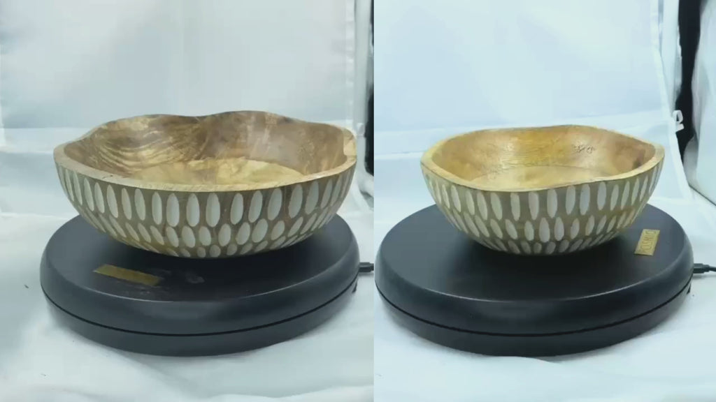 Bring the beauty of nature to your dining table with POSHIO Wooden Serving Bowls, handcrafted from premium dry mango wood and finished with a food-grade coating for safe and long-lasting use. The striped hand-painted finish makes each piece a decorative centerpiece that blends seamlessly with both contemporary and traditional interiors. Every bowl is uniquely hand-carved by skilled artisans, showcasing the raw charm of irregular shapes, natural textures, and timeless craftsmanship. Perfect for serving fresh fruits, salads, pasta, chips, and more — these versatile bowls also double as stylish table décor or thoughtful gifts for loved ones.