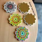 POSHIO Ceramic Coaster for Table Decor, Set of 5 | U.V. Printed Mandala Art on Flower Shaped Ceramic with Cork Base for Anti-Skid